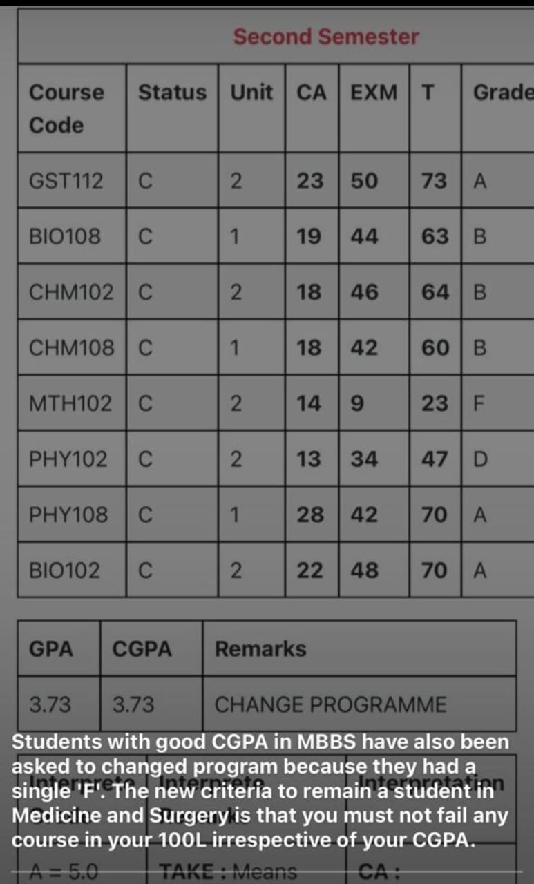 Reports indicate that even students with a 3.0 CGPA have been instructed to change programmes.